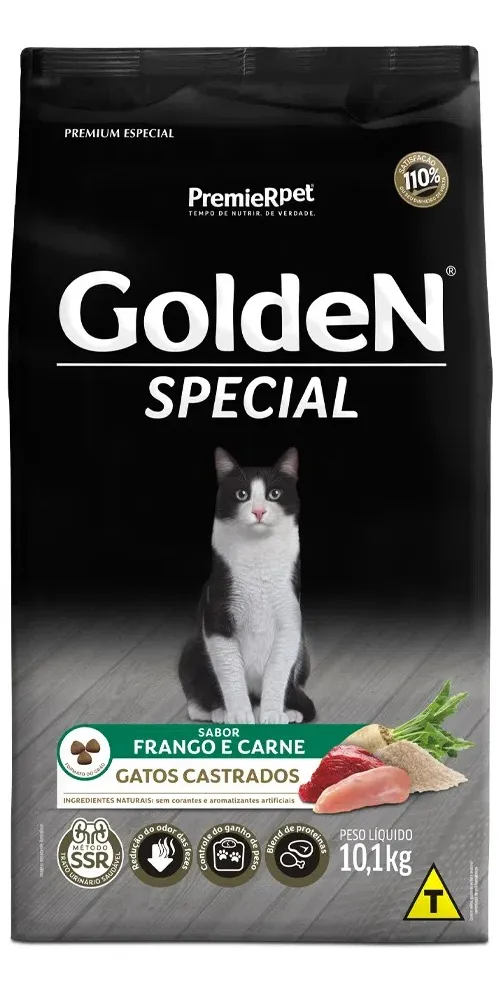 Alimento Golden Gatos Castrados Sabor frango e Carne 10.1 kg